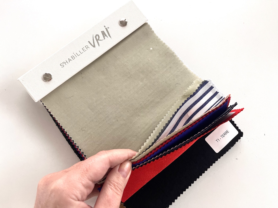 Ce catalogue de matières est l’un des éléments du coffret S’Habiller Vrai. Il vous permet de toucher et d’expérimenter différentes matières et de les identifier facilement grâce à l’étiquette présente sur chaque tissu.